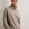 The Blue Mia jumper is crafted from cashmere for a cosy yet lightweight feel that’s soft to the touch. A wide, overlapping trim frames the V-neckline, lending subtle structure to its relaxed silhouette, while fine ribbing at the hem and cuffs adds a refined finish. 100% cashmere V-neckline Ribbed hem and cuffs