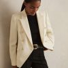 The Jade blazer is tailored to a single-breasted silhouette and crafted from a smooth wool blend. Lightly padded shoulders and peak lapels lend structure to the topline, while a single button fastens neatly at the front. Wool blend Single-breasted Peak lapels Lightly padded shoulders Lined Single vent to reverse The model is wearing a size 8. Measurements of model: Height 5ft 10″ / 177.8cm.