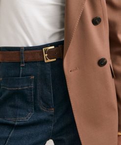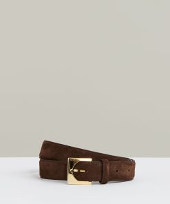 Reiss Women’s Suede Square-buckle Belt In Chocolate | Chocolate