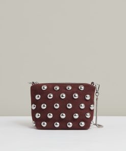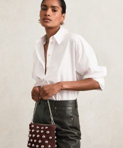 Reiss Women’s Suede Studded Shoulder Bag In Oxblood | Oxblood