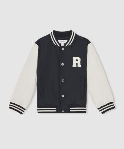 Reiss Kid’s Boys 13-14 Yrs Colour-block Varsity Bomber Jacket In Navy/ Off White | Navy & Off White