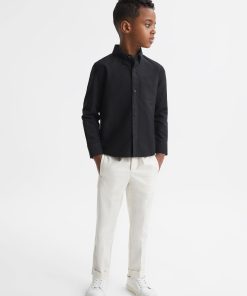 Reiss Kid’s Boys 13-14 Yrs Linen Cutaway Collar Shirt In Blue/white Stripe | Blue & White Stripe