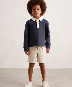 Reiss Kid’s Boys 3-9 Yrs Cotton Half-button Rugby Polo Shirt In Grey Marl/white | Grey Marl & White