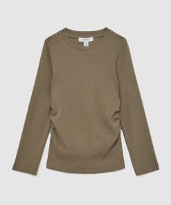 Reiss Kid’s Girls 9-13 Yrs Cotton Ruched Long-sleeve T-shirt With Stretch In Chocolate | Chocolate