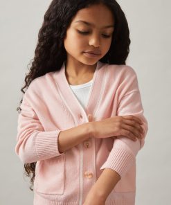 Reiss Kid’s Girls 9-13 Yrs Wool-blend Open-stitch Jumper With Cashmere In Khaki Green | Khaki Green