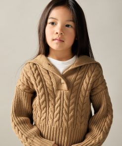 Reiss Kid’s Girls 13-14 Yrs Cotton-blend Open-collar Cable-knit Jumper With Wool In Camel | Camel