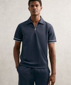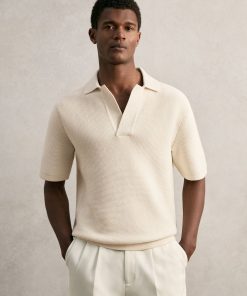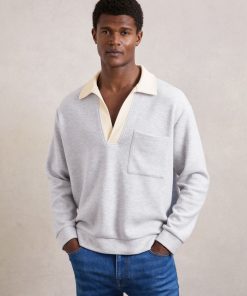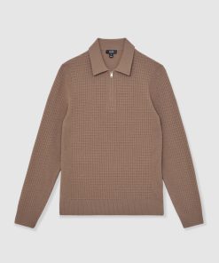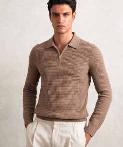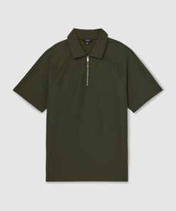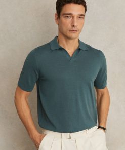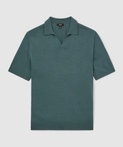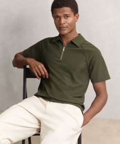 Reiss Men’s Merino Wool Long-sleeve Polo Shirt In Dark Military Green | Dark Military Green