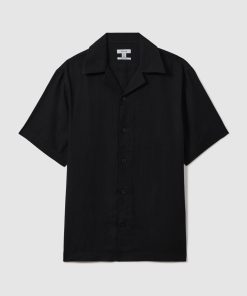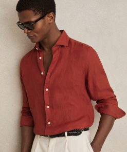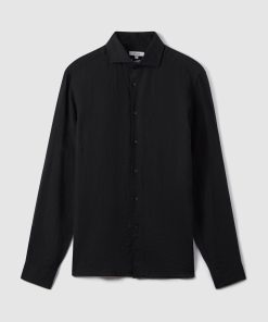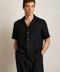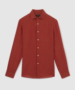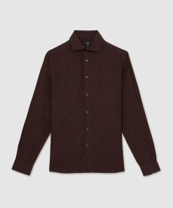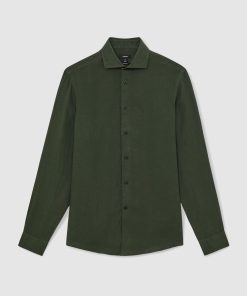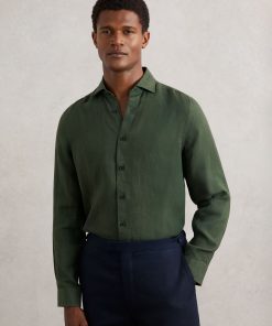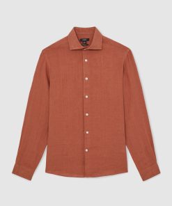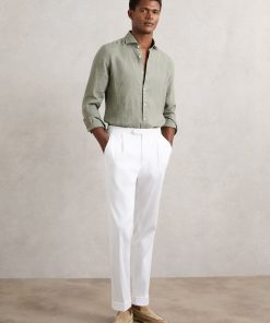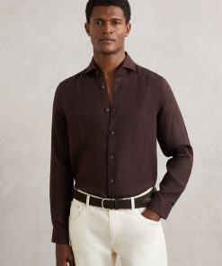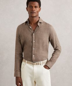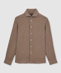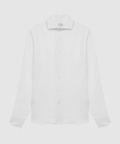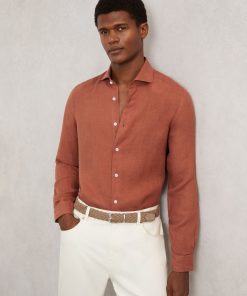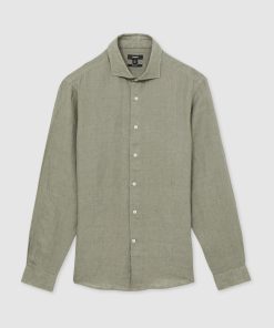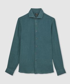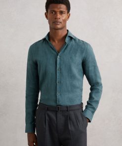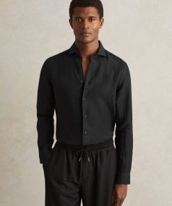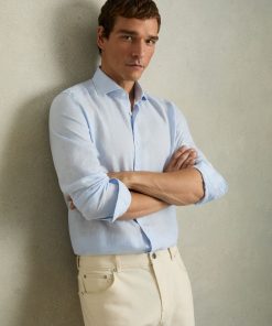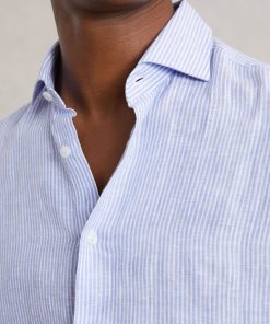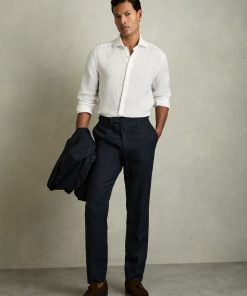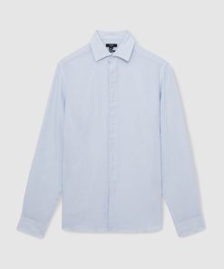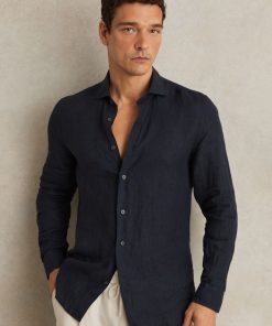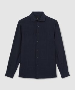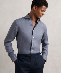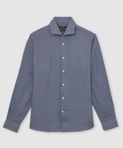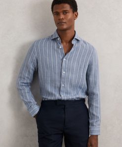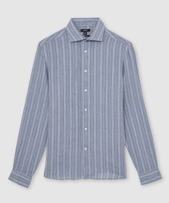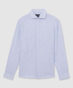 Reiss Men’s Linen Striped Cutaway-collar Shirt In Airforce Blue/white | Airforce Blue & White