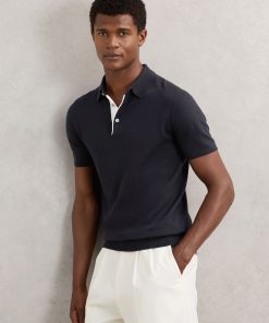 Reiss Men’s Contrast-placket Polo Shirt With Cotton In Washed Sage Green | Washed Sage Green