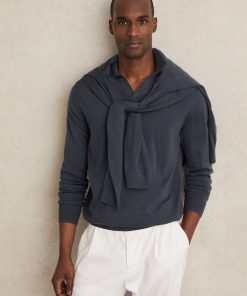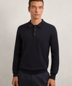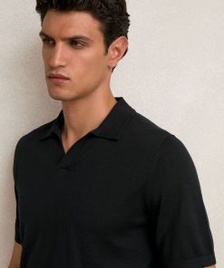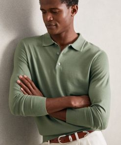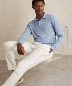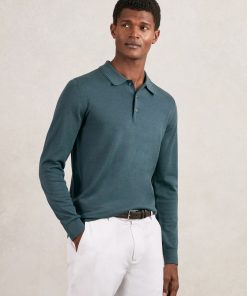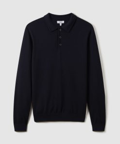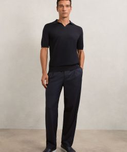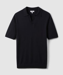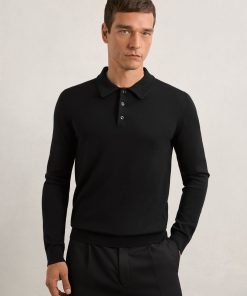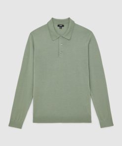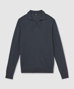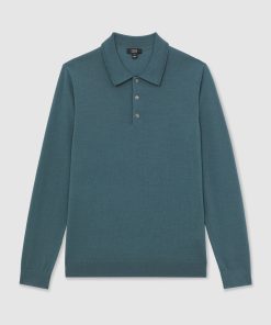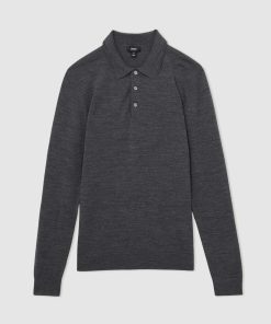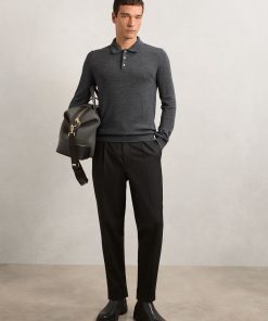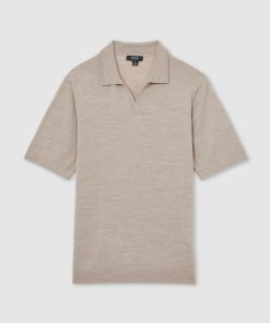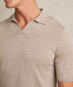 Reiss Men’s Merino Wool Open-collar Polo Shirt In Wicker Brown Melange | Wicker Brown Melange