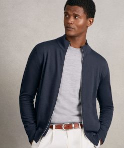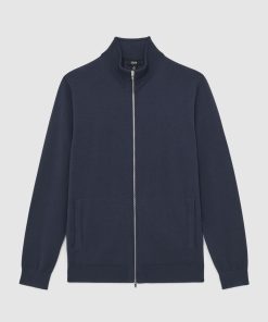 Reiss Men’s Merino Wool Zip Through Cardigan In Wicker Brown Melange | Wicker Brown Melange