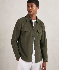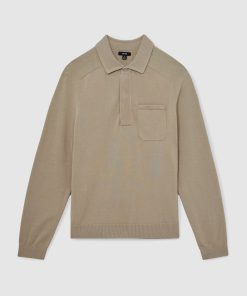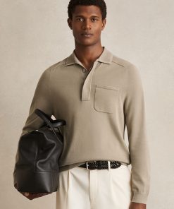 Reiss Men’s Contrast-placket Polo Shirt With Cotton In Washed Sage Green | Washed Sage Green