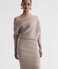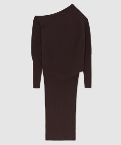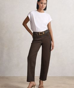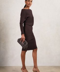 Reiss Women’s Modal-blend Interlock Wide-leg Joggers In Dark Chocolate Brown | Dark Chocolate Brown