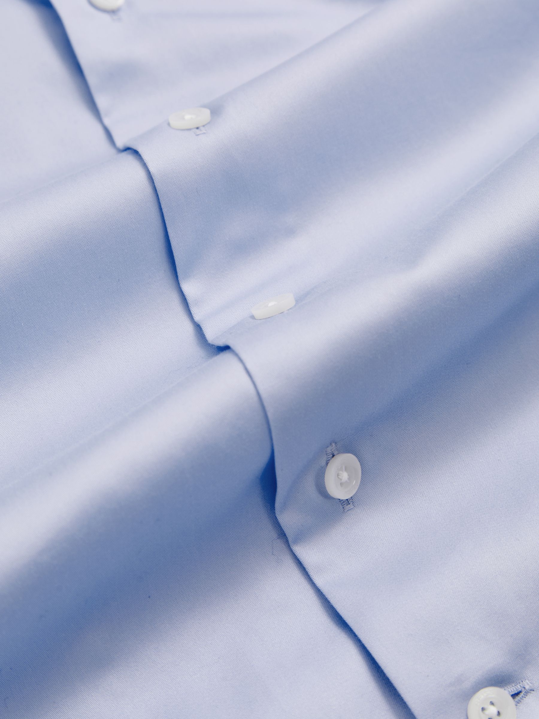 The Soft Blue Remote shirt is the perfect addition to formal looks. The long-sleeved style is crafted from 100% cotton and is cut to a slim fit. 100% Cotton Slim fit Spread collar Buttoned cuffs Front buttons