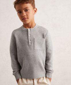 The Mid Grey Melange Harrison top is crafted from a soft cotton-blend rib knit for a tactile finish. A classic Henley neckline with a half-button placket and chest patch pocket nods to its athletic origins. Cotton blend Rib knit Chest patch pocket Half-button placket