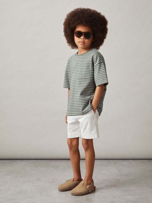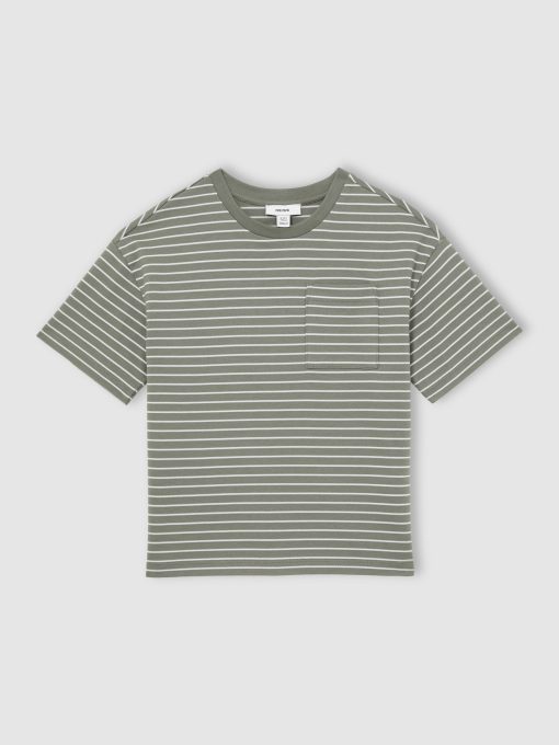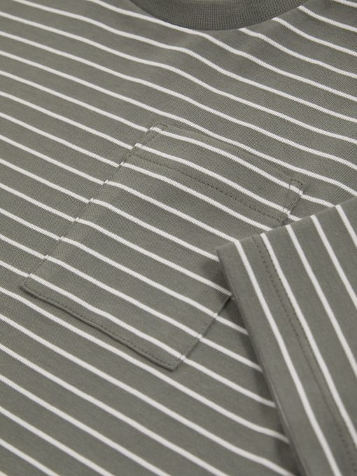 The Sage/White Paudie T-shirt is crafted from a premium cotton blend and cut with drop shoulders for a slightly relaxed fit. Striped throughout, it’s finished with a chest patch pocket and classic crew neckline. Cotton blend Stripes Crew neckline Drop shoulders Chest patch pocket