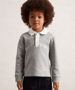 The Grey Marl/White Aiden rugby polo is crafted from loopback cotton for a soft yet structured feel. A contrasting collar and half-button placket nod to its sporting roots, while ribbed cuffs complete the long-sleeve design. 100% Loopback cotton Contrasting polo collar Contrasting half-button placket Long sleeves Ribbed cuffs