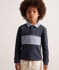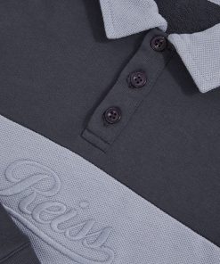 The Airforce Blue/Navy Blue Bryce rugby polo shirt is cut from loopback cotton with a bold contrast panel and an embroidered Reiss logo. A contrasting collar and half-button placket refine the look. 100% Loopback cotton Contrasting panel with embroidered logo Contrasting collar Half-button placket Ribbed cuffs