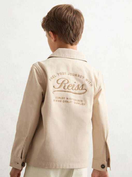 Burnished rivets, multiple patch pockets, and functional buttons lend the Copeland denim overshirt a workwear-inspired feel. Embroidery on the chest and back nods to its motor maintenance theme. 100% Cotton denim Embroidered motor car logo patch Embroidered branding to reverse Multiple patch pockets Rivets Front buttons