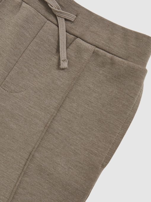 The Taupe Brown Premier joggers are crafted from soft interlock jersey and taper to an elasticated cuff. Pintuck detailing adds a refined touch, while the drawstring waist ensures a personalised fit. Interlock jersey Elasticated drawstring waist Pintucks Side slip pockets Elasticated cuffs