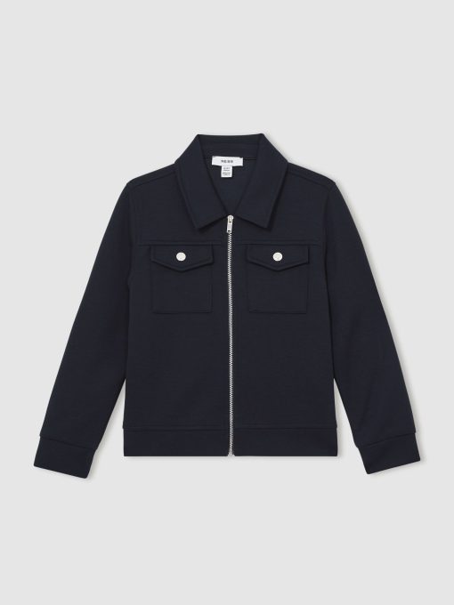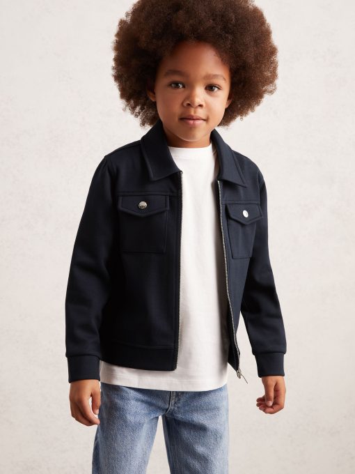 The Medina overshirt is crafted from smooth interlock jersey for a premium handle. Press-stud flap pockets add a functional touch, while a front zip completes the design with a sleek, modern edge. Interlock jersey Chest flap patch pockets with press-stud Flat collar Front zip closure