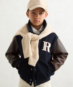 Reiss Kid’s Boys 13-14 Yrs Motor Cars Press-stud Bomber Jacket In Navy/brown | Navy & Brown