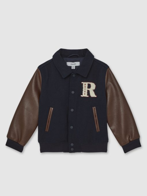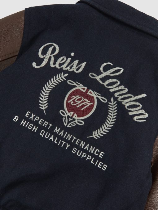 Reiss Kid’s Boys 13-14 Yrs Motor Cars Press-stud Bomber Jacket In Navy/brown | Navy & Brown