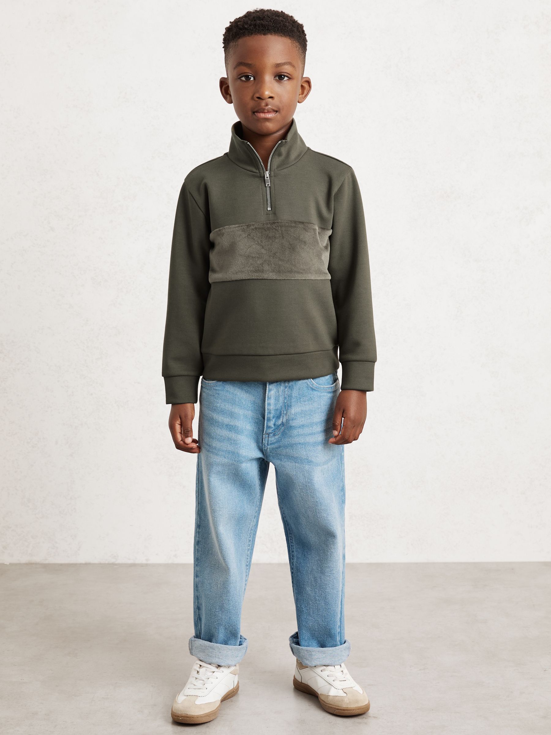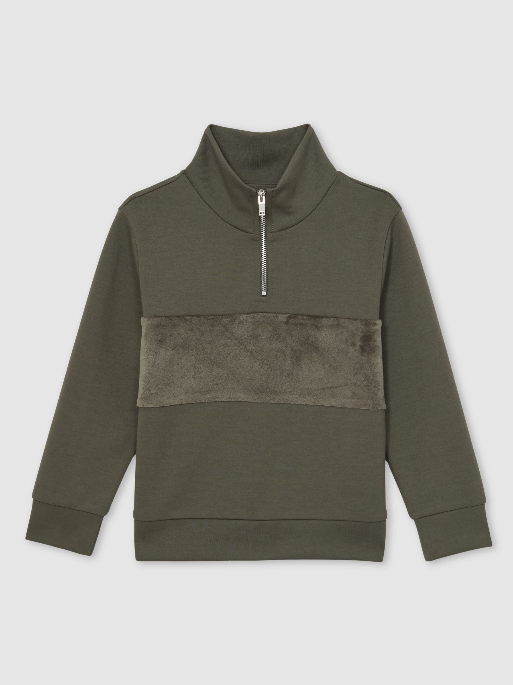 Reiss Kid’s Boys 13-14 Yrs Slim Fit Half-zip Funnel Neck Velour Sweatshirt In Dark Sage Green | Dark Sage Green