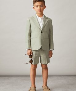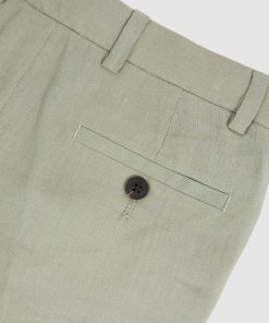 Lightweight and breathable, the linen Kin trousers are tailored into a slim profile with internal side adjusters. Matching blazer 100% Linen Side pockets Buttoned pockets to reverse Internal side adjusters Slim fit