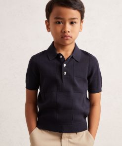 Crafted from a soft, compact knit, the Clement polo shirt is elevated by a stitched windowpane pattern for subtle texture. A press-stud placket adds a functional finish Compact knit Stitch detailing Polo collar Press-stud placket Rib-knit hem and cuffs