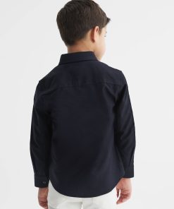 Crafted from cotton, the navy Greenwich Oxford shirt will become a wardrobe staple thanks to its comfortable wear and slim fit. Wear it as part of a smart outfit for a formal finish, or pair with trousers and sneakers for a modern take on preppy styling. 100% cotton Button-down collar Button-front closure Chest patch pocket Long sleeves Buttoned cuffs Slim fit The model is wearing a size 5-6 yrs. Measurements of model: Height 3ft 7″ / 115cm.
