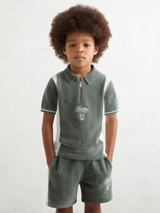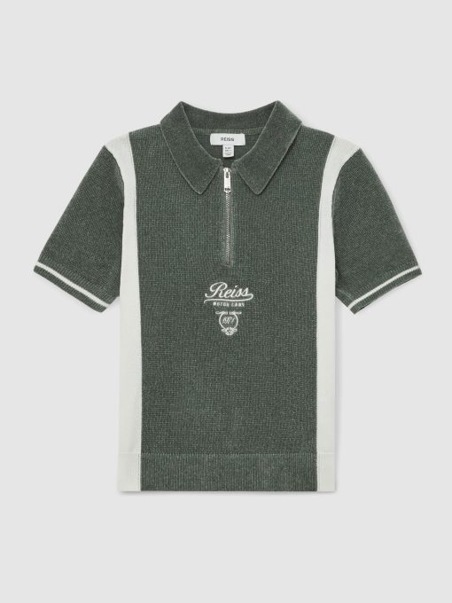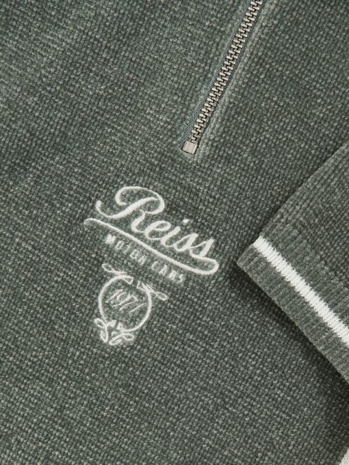 Crafted from plush chenille, the Walter polo shirt is a sporty style made for everyday wear. It’s elevated by bold colourblocking and Reiss motor cars embroidery at the front. Chenille fabrication. Reiss motor cars embroidery. Colourblocking. Polo collar Half-zip.