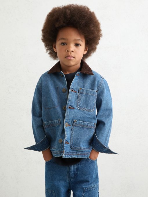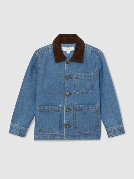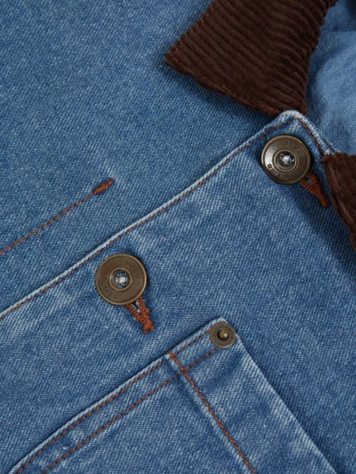 Burnished rivets, multiple patch pockets, and functional buttons lend the Herman denim overshirt a workwear-inspired feel. A contrasting corduroy collar enhances its heavy-duty feel. Cotton denim Corduroy collar Patch pockets Front buttons