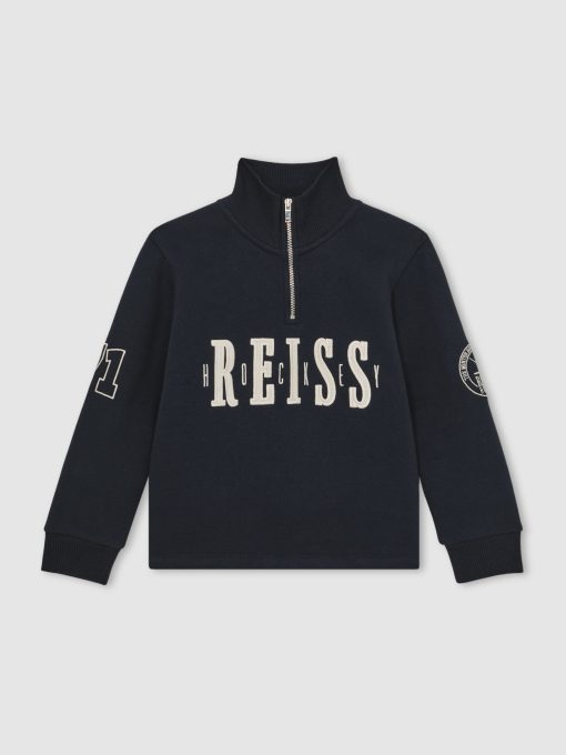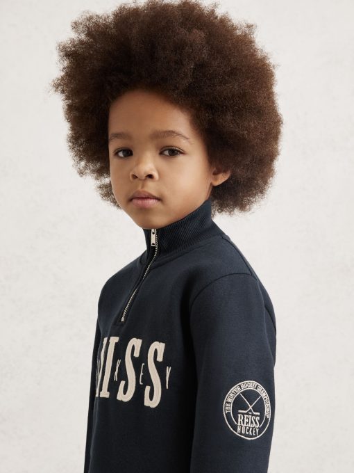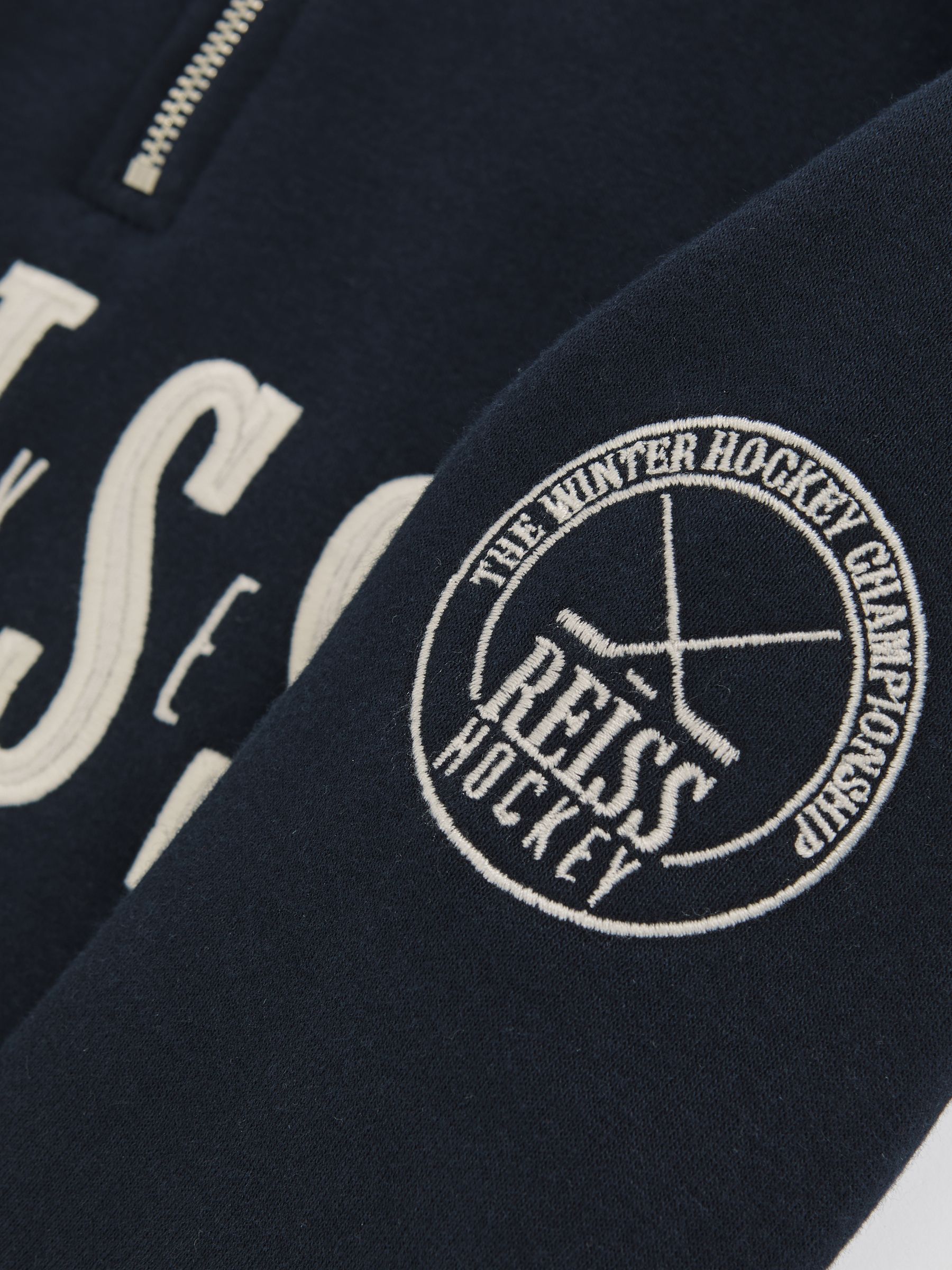 The Martin sweatshirt is a relaxed style, adorned with an oversized logo and Reiss Hockey embroidery. A funnel neck with a half-zip opening enhances its sporty aesthetic. It’s finished with ribbing at the neck and cuffs. Cotton blend Reiss Hockey embroidery Funnel neck Half zip Ribbed neck and cuffs