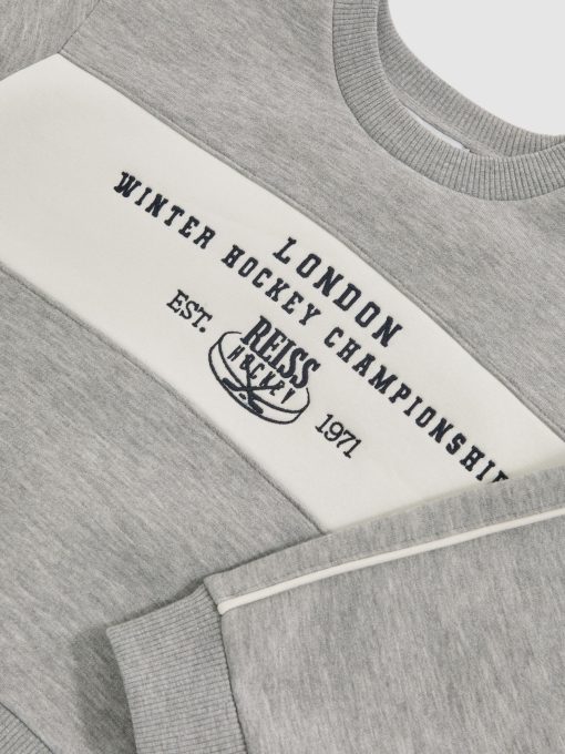 The Owen sweatshirt is crafted from a cotton-blend for comfort and a sporty aesthetic. A contrast panel across the chest bears Reiss Hockey Championship embroidery, and bright piping details complete the design.Cotton blendReiss Hockey embroideryCrew necklineRibbed neck, hem and cuffs