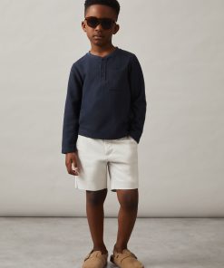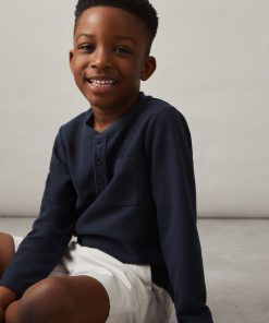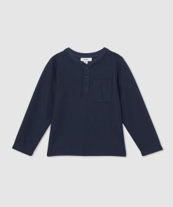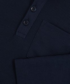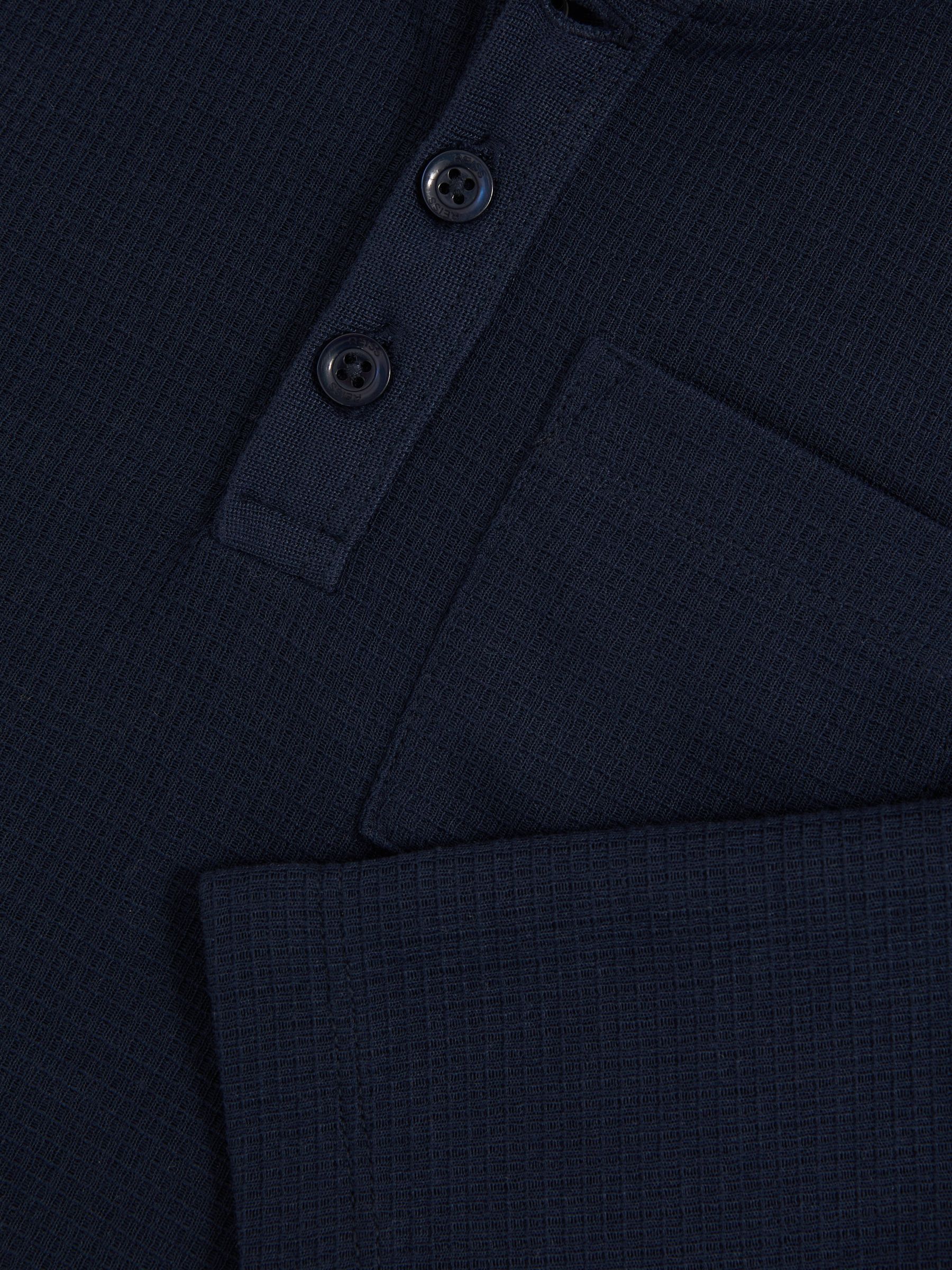A soft waffle textured lends the Navy David T-Shirt a tactile finish. It’s finished with a classic Henley neckline and long sleeves. Cotton blend Waffle texture Short button placket Chest patch pocket