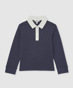 The Navy/White Aiden rugby polo is crafted from loopback cotton for a soft yet structured feel. A contrasting collar and half-button placket nod to its sporting roots, while ribbed cuffs complete the long-sleeve design. 100% Loopback cotton Contrasting polo collar Contrasting half-button placket Long sleeves Ribbed cuffs