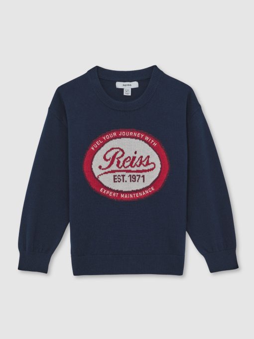 The Blaine jumper is a preppy style, boldly elevated by a motor cars-inspired intarsia logo design at the front. It’s knitted from 100% cotton and finished with a classic crew neckline. 100% cotton Knitted Intarsia Reiss motor cars logo Crew neckline Ribbed trims