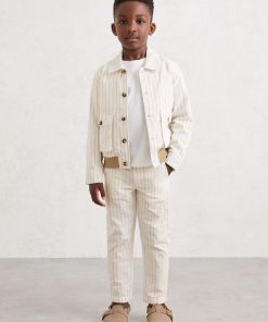 Reiss Kid’s Boys 3-9 Yrs Cotton Pinstripe Harrington Jacket In Off White/taupe Brown | Off White & Taupe Brown