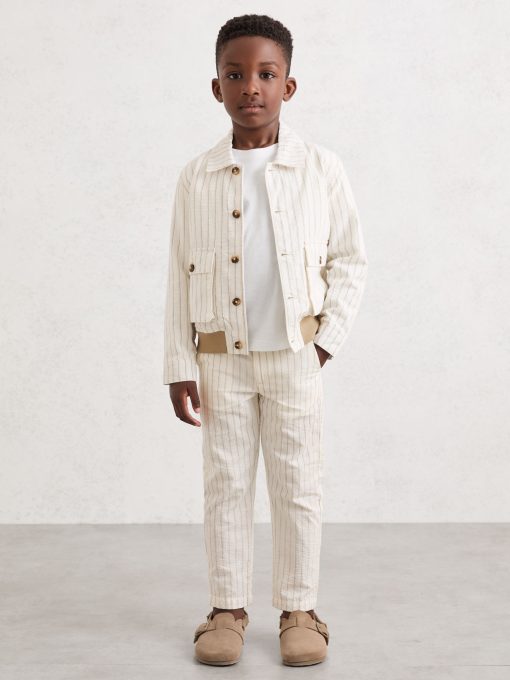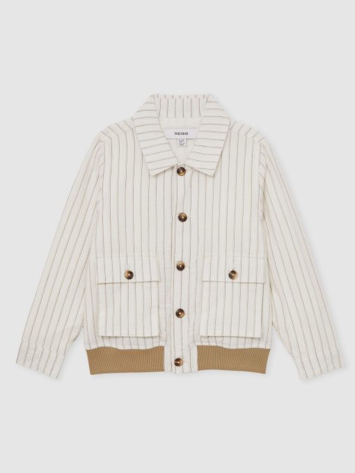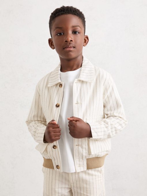 Reiss Kid’s Boys 3-9 Yrs Cotton Pinstripe Harrington Jacket In Off White/taupe Brown | Off White & Taupe Brown