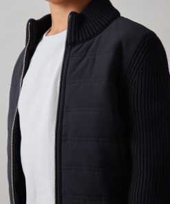 The Southend jacket features a lined, quilted front panel and a knitted back panel and arms, lending a sense of warmth and breathability. It’s complete with front zips and ribbed detailing to the neckline and waistband. Hybrid quilt and knit construction Lined front panel Funnel neckline Zip-front closure Ribbed trims Side-slip pockets