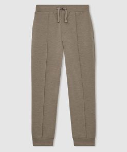 The Taupe Brown Premier joggers are crafted from soft interlock jersey and taper to an elasticated cuff. Pintuck detailing adds a refined touch, while the drawstring waist ensures a personalised fit. Interlock jersey Elasticated drawstring waist Pintucks Side slip pockets Elasticated cuffs