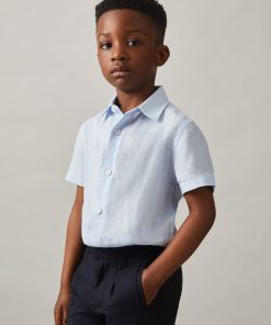 Reiss Kid’s Boys 3-9 Yrs Linen Short-sleeve Shirt In Pale Blue | Pale Blue