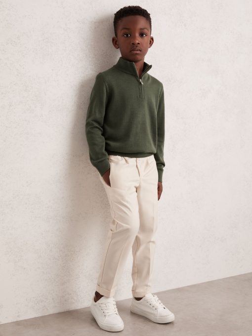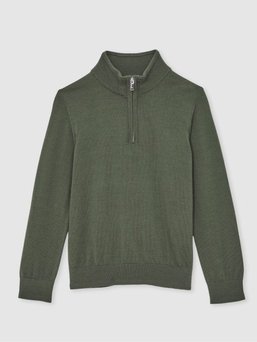 The Kale Green Blackhall jumper is a classic half-zip style, crafted from extra-fine merino wool. A finely ribbed hem and cuffs complete the look. 100% Merino wool Funnel neck Half zip Ribbed hem and cuffs