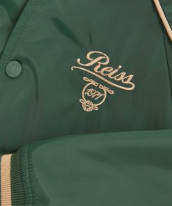 Contrast piping and striped, rib-knit trims lend the Harvey bomber jacket a varsity-inspired twist. Reiss motor cars embroidery on the chest and back adds a playful finish. Technical fabrication Reiss motor cars embroidery on the chest and back Contrast piping Striped, rib-knit trims Front press-studs