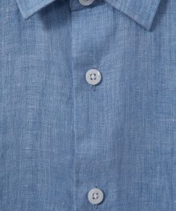 Crafted from lightweight linen with a subtle marl texture, the sky blue Ruban shirt marries comfort with a versatile style. This button-front style is fitted with a cutaway collar and short sleeves. 100% linen Cutaway collar Button-front closure
