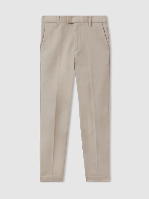 The stone Eastbury chinos are crafted from a cotton-stretch blend. They're fitted through the leg and taper at the knee to a slim hem opening with internal side adjusters. Cotton blend Internal side adjusters Slim fit