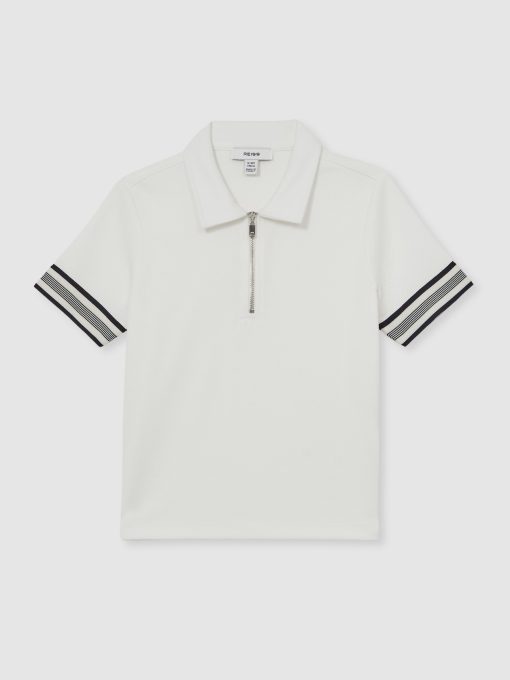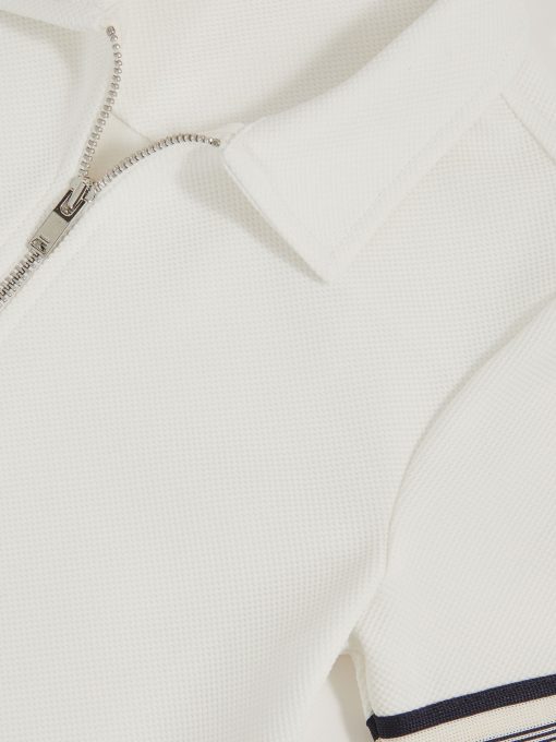 Contrasting cuff stripes and a half-zip collar give the White Wills polo shirt a refined, sporty edge. It’s crafted from textured fabric for a tactile handle. Textured finish Stripe cuffs Polo collar Half-zip