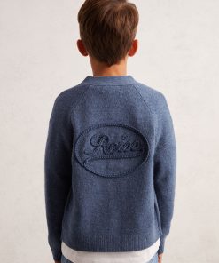 Reiss Kid’s Boys 3-9 Yrs Wool Embroidered-logo Cardigan In Dark Airforce Blue | Dark Airforce Blue
