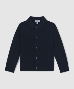 Reiss Kid’s Boys 3-9 Yrs Wool V-stitch Button-through Cardigan In Navy Blue | Navy Blue